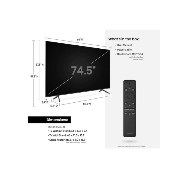 80 inch tv dimensions