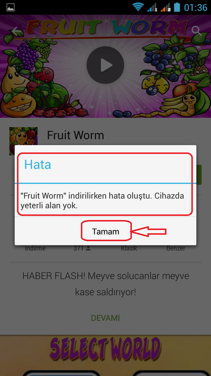 cihazda yeterli alan yok hatasi ve