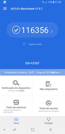 velocidade do galaxy a8 e inferior a