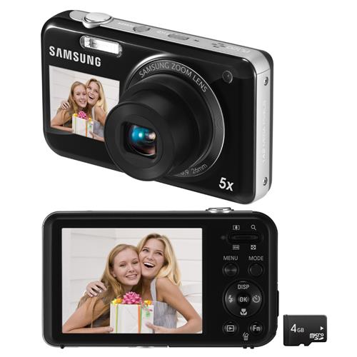 samsung pl120 14 2mp dualview digital camera 5x optical zoom 2 7in rear 1 5in front lcd monitor 720p hd video captures to sd sdhc media black