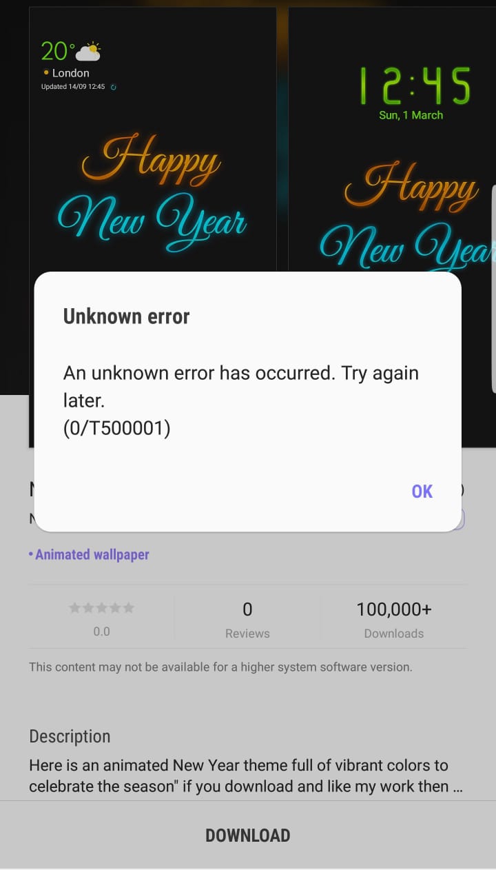unknown error samsung theme store