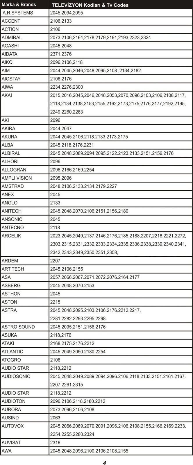 full akilli kumanda kodlari tam liste