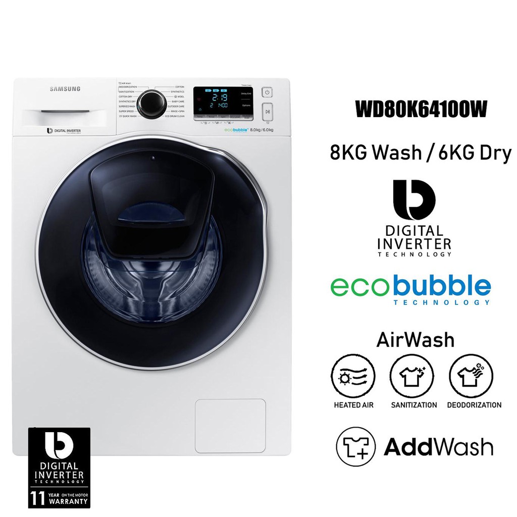 buy samsung 8kg washer and 6kg dryer with digital inverter motor ecobubble wd80j5410as 1 year warranty online shop electronics appliances on