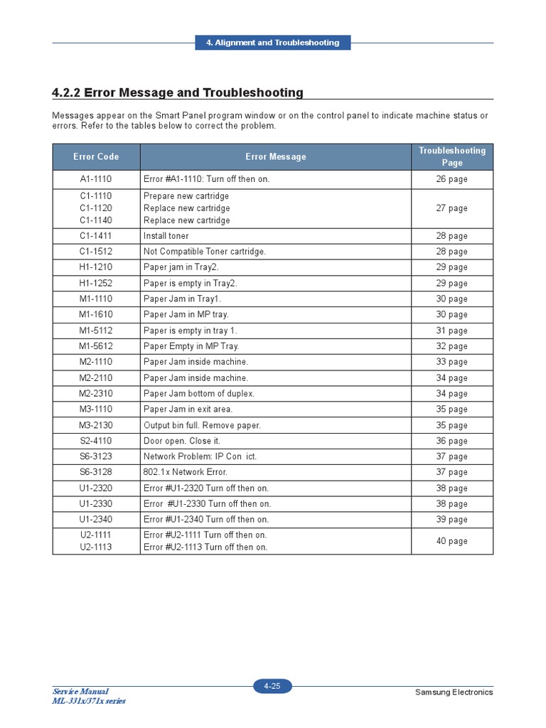 samsung ml 3310 3710 4623 error codes