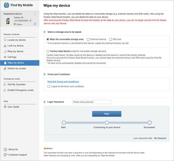 samsung galaxy mobile remote unlock