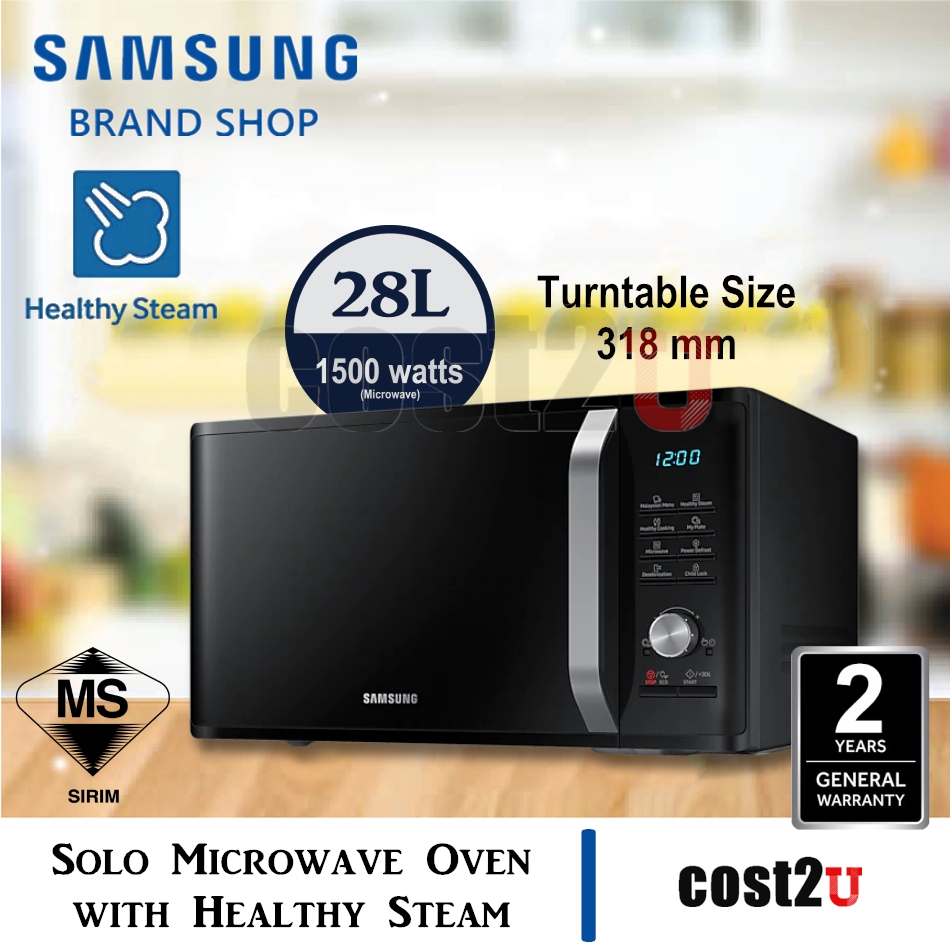 samsung ms23k3555ek mw3500k black solo microwave oven with health steam 23l