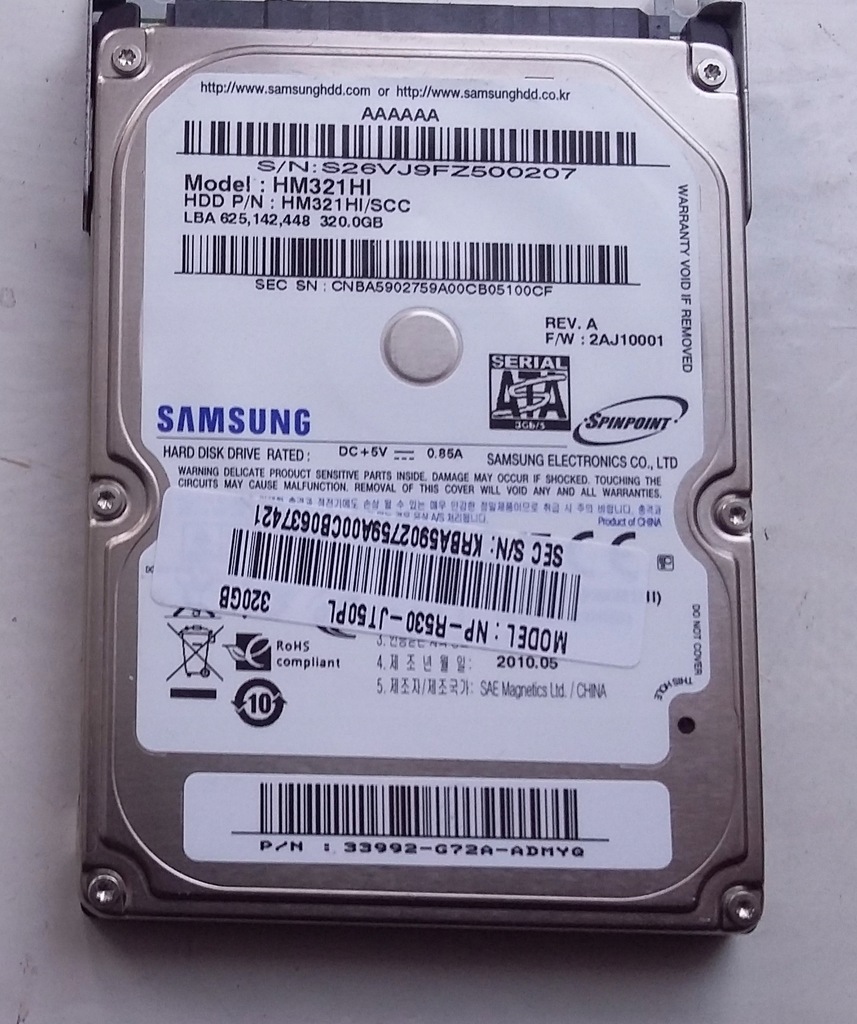 samsung hm321hi 320gb 5 4k 2 5 sata hard disk drive f w 2aj10002 korea rev a