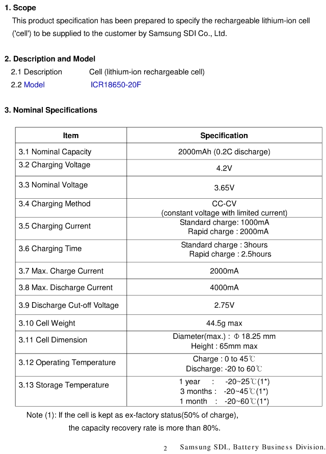 samsung 20f 18650 battery 2000mah 3