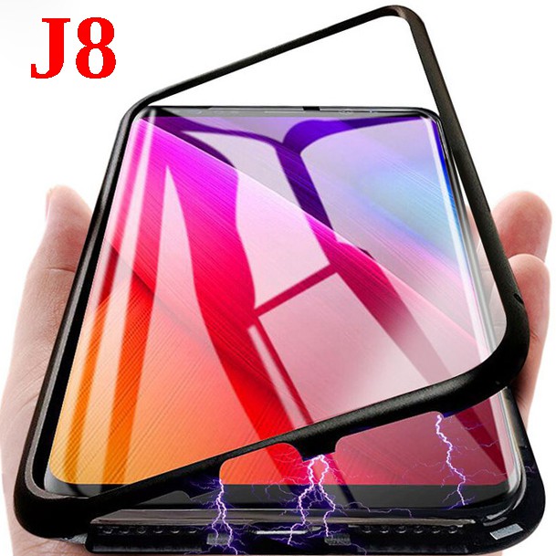 casing magnetic metal case for samsung galaxy j8 case tempered glass casing case