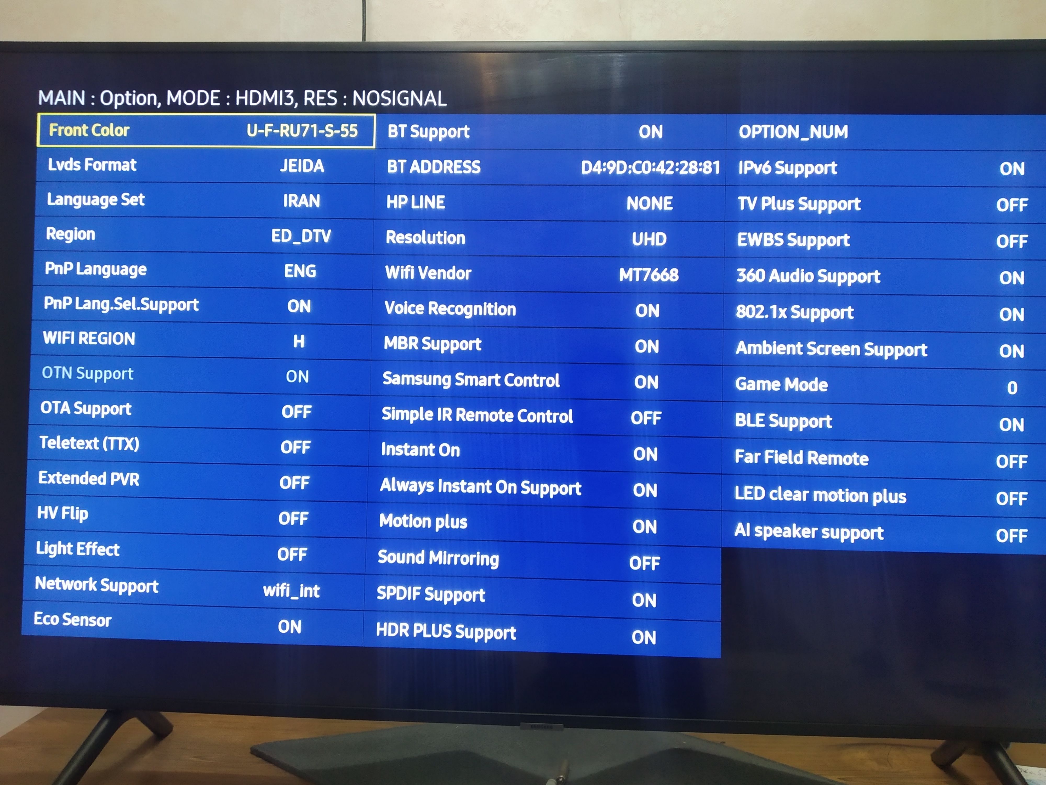 problem in service menu tv ua55ru7100