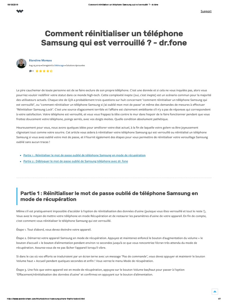 reinitialiser samsung s10 mot de passe