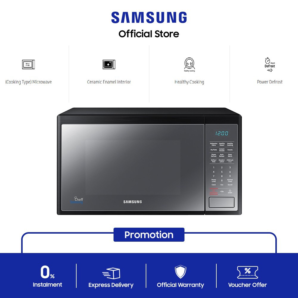samsung 32l ms32j5133gm solo microwave oven with food warming