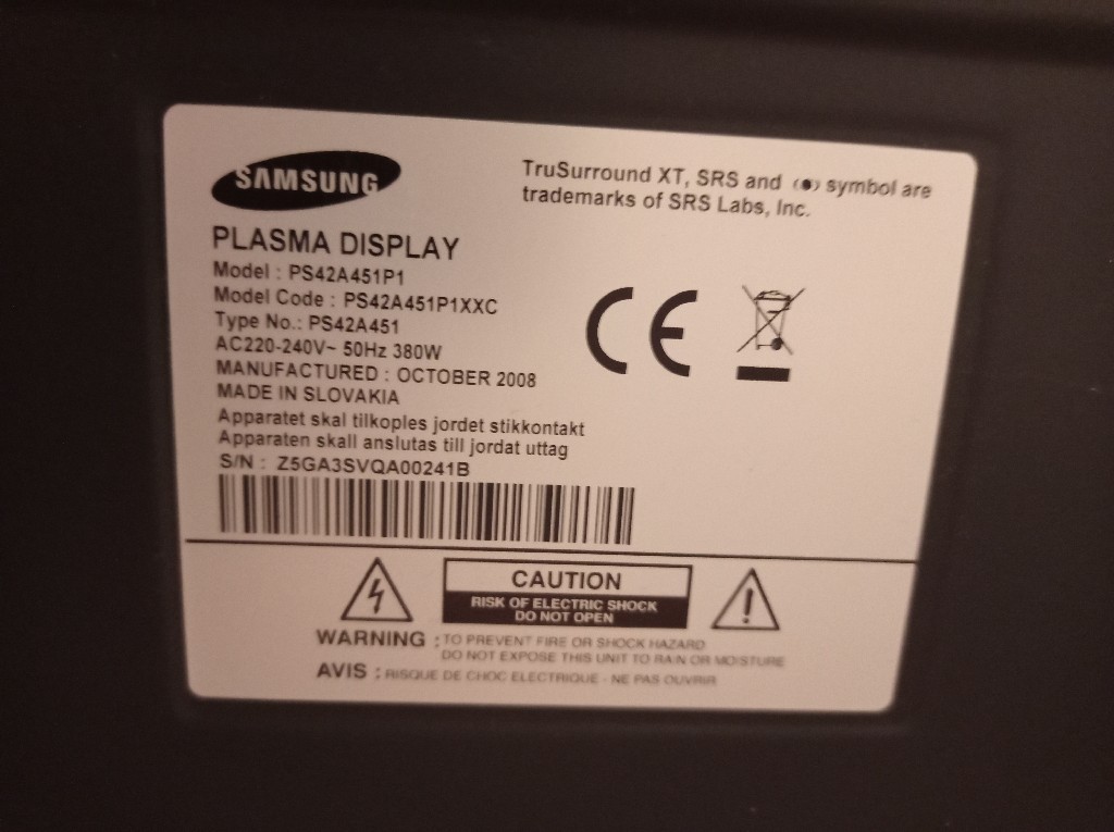 samsung ps42a451p1 plasma disp nie