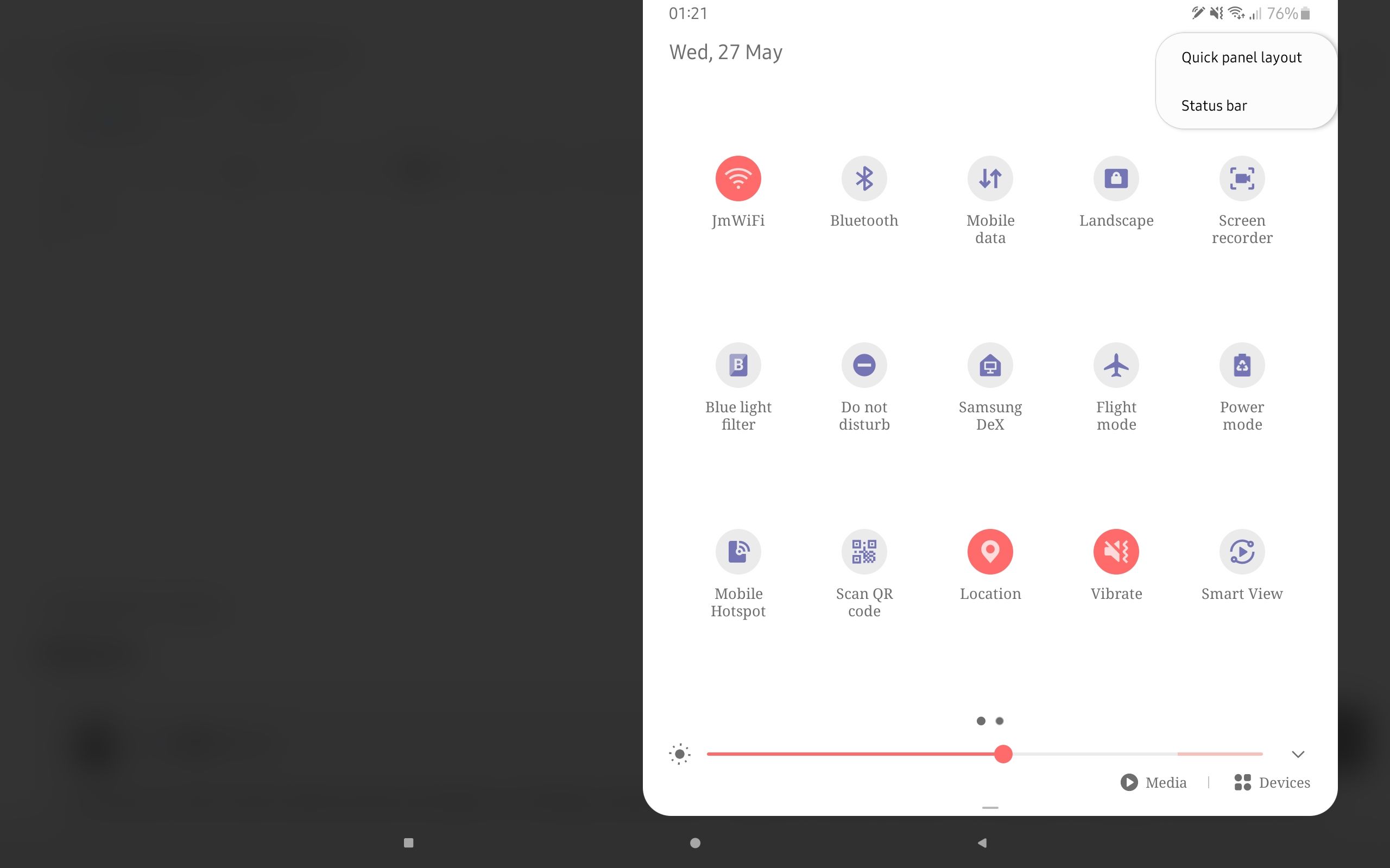 quick panel settings samsung one ui