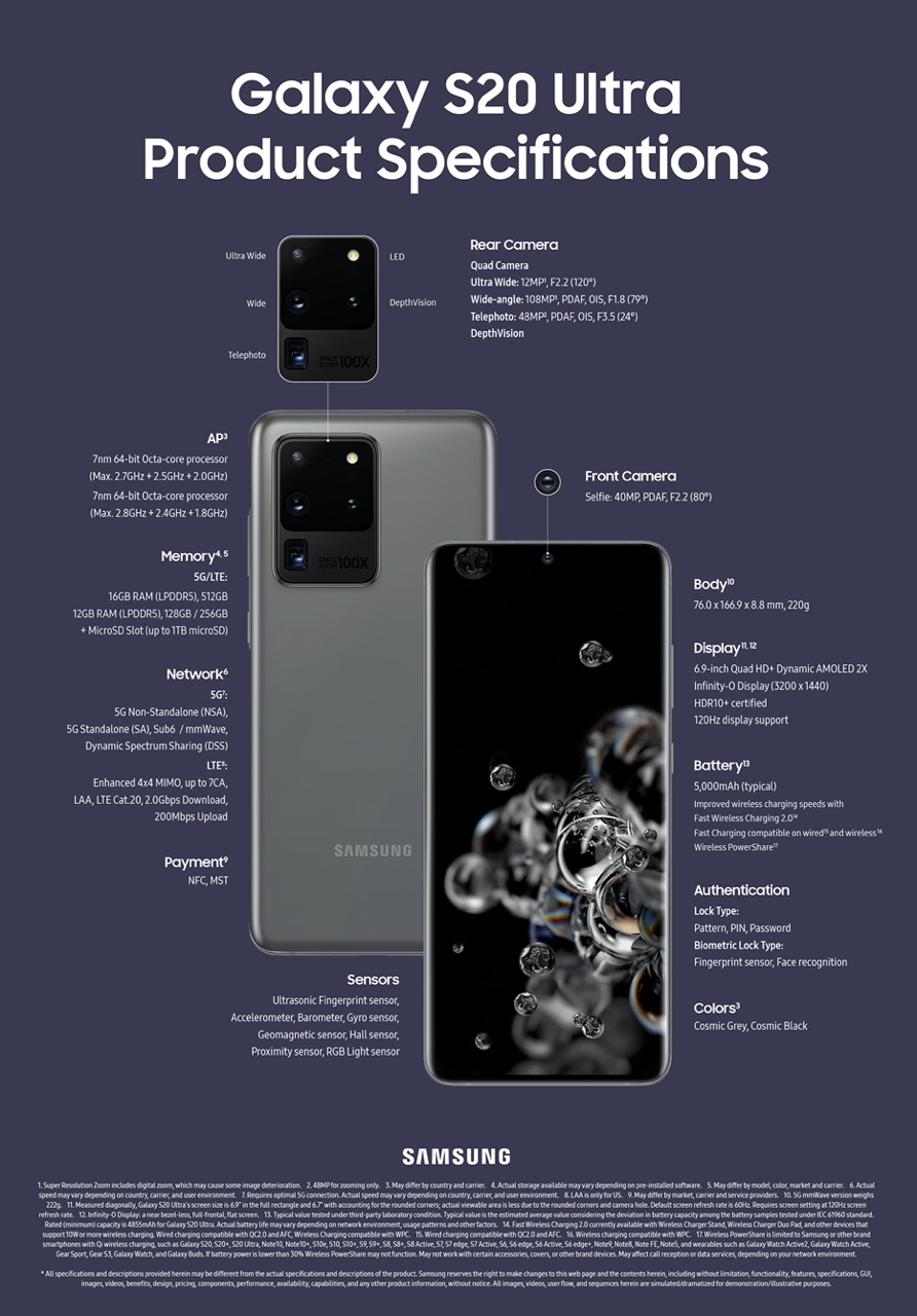 samsung galaxy specifications s20 ultra