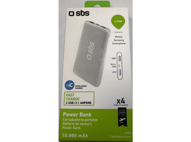 sbs ttbb100002ufastw 10000mah 2usb 2 1a tasinabilir sarj cihazi