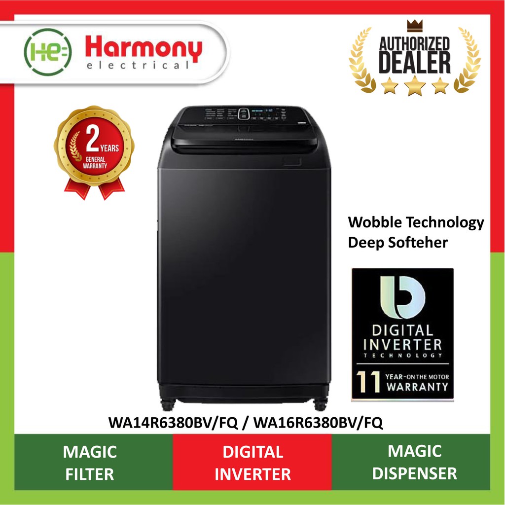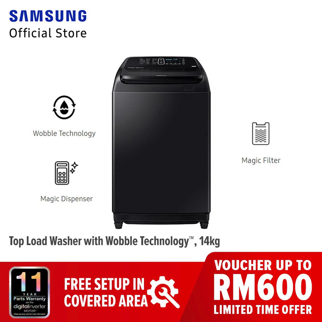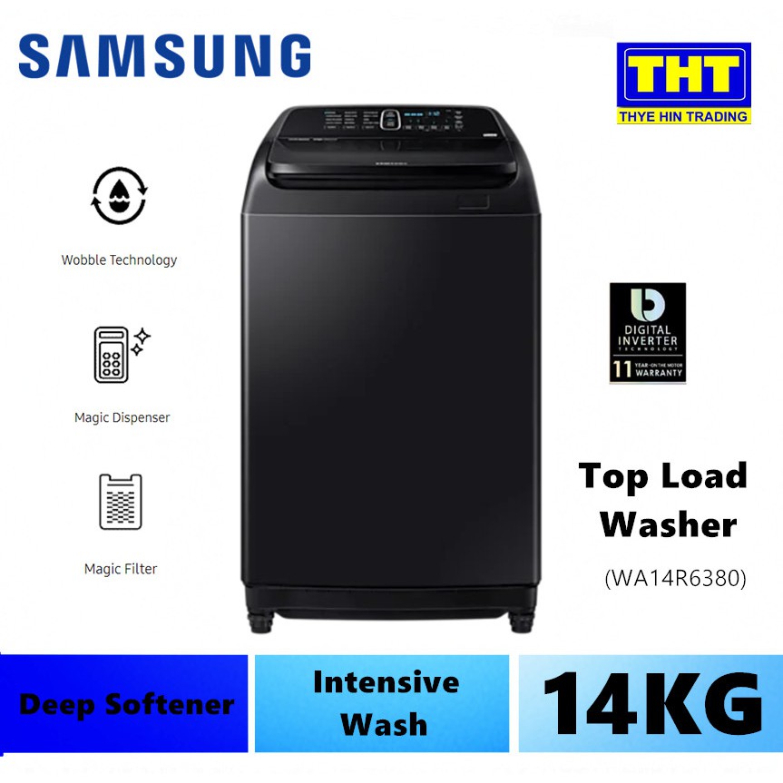 samsung 14kg top load washer with wobble technology wa14r6380bv fq