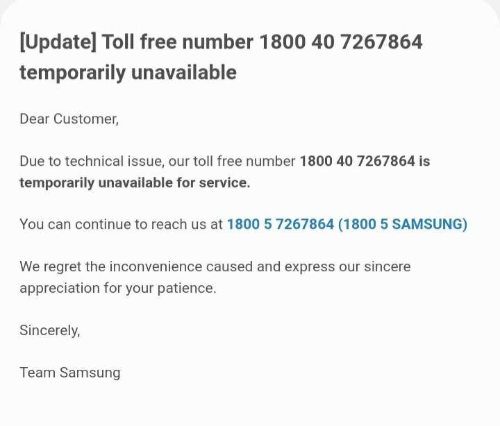 samsung customer service number