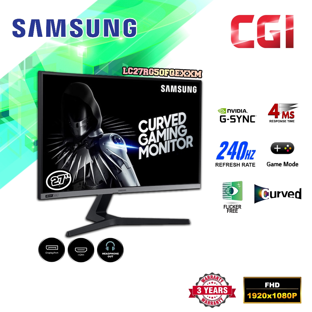 samsung lc27rg50fqwxxl 27 inch curved gaming monitor 1500r curved nvidia g sync 4ms response time 240hz refresh rate fhd va panel hdmi