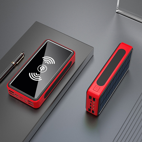 50000mah 80000mah power bank solar battery pack wireless charging led light powerbank portable 4usb mobile phone charger for xiaomi samsung