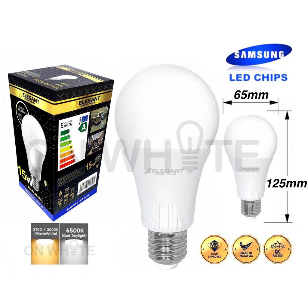 belegant led bulb 15w e27 a65 samsung led chip 3000k 6500k warmwhite daylight philips osram megaman cosgo