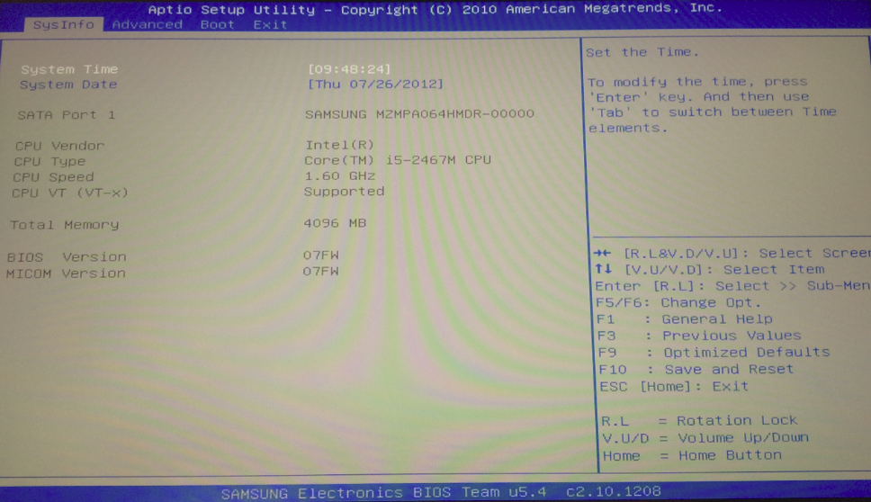 samsung bios configuration