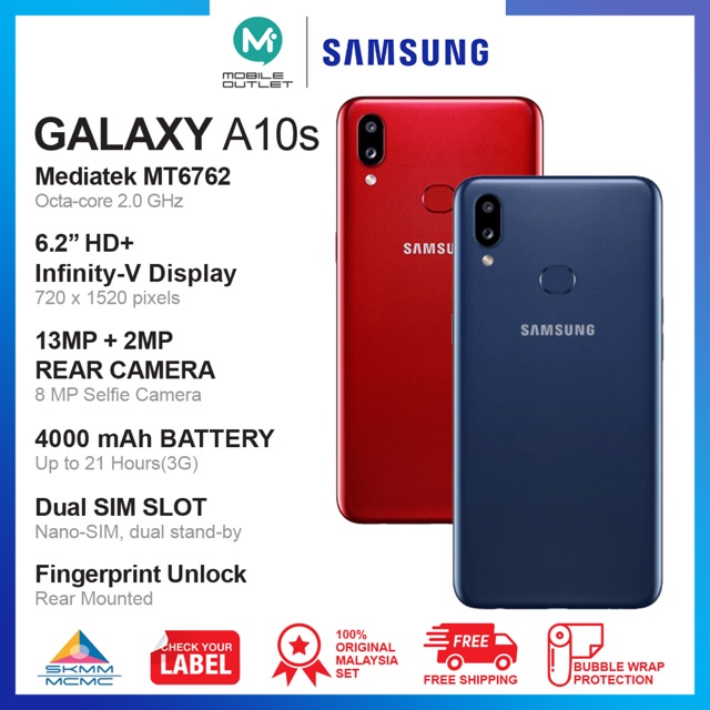 galaxy a10s 6 2 inch 2gb ram 32gb rom android 9 0 pie 13mp 2mp 8mp 4000 mah 4g